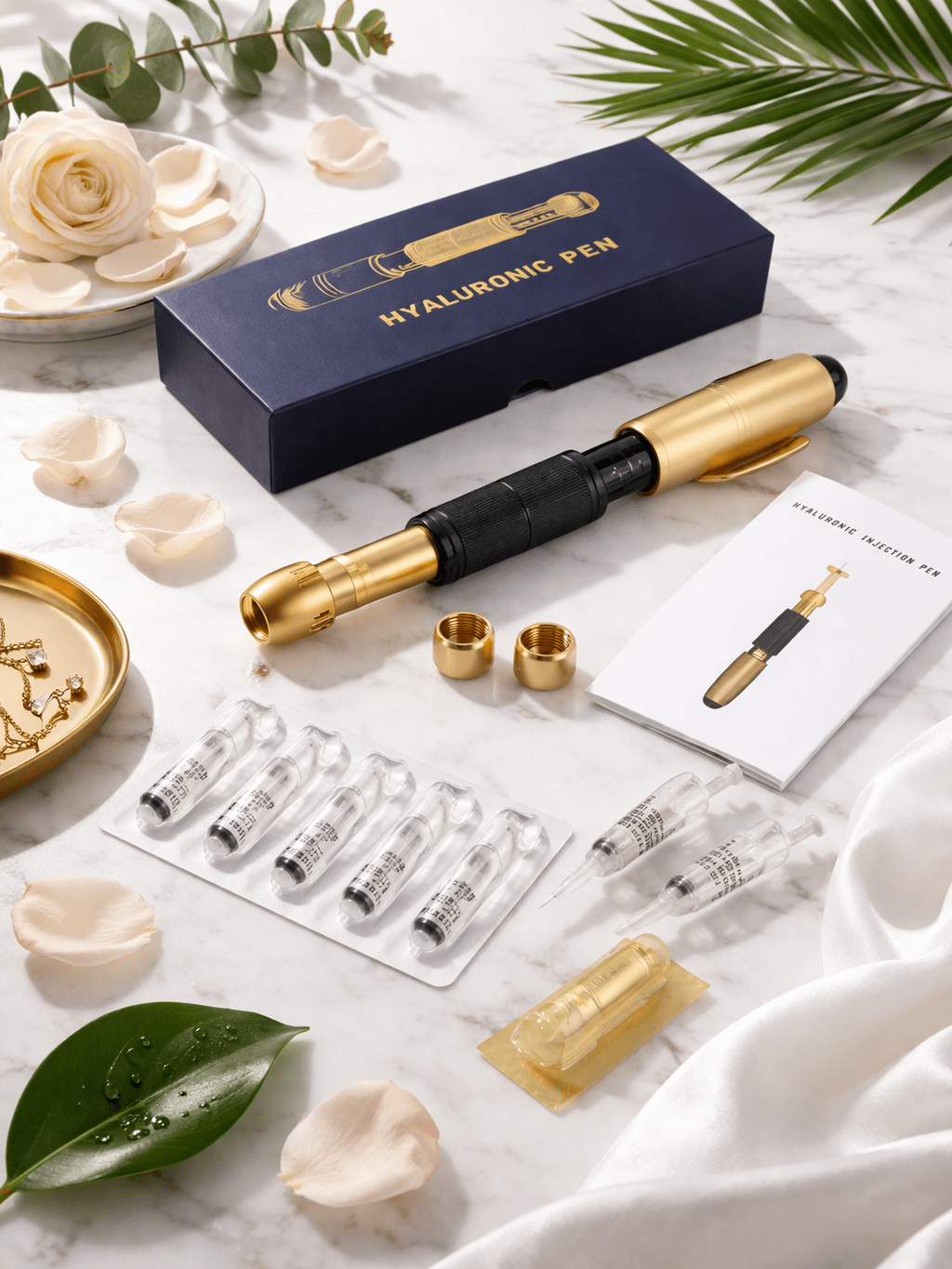 A hyaluron pen is a needle-free delivery device used in aesthetic treatments to introduce liquid solutions into the skin using high-pressure technology. Instead of using traditional needles, the device creates a controlled stream that allows the solution to penetrate the skin through a microscopic opening.