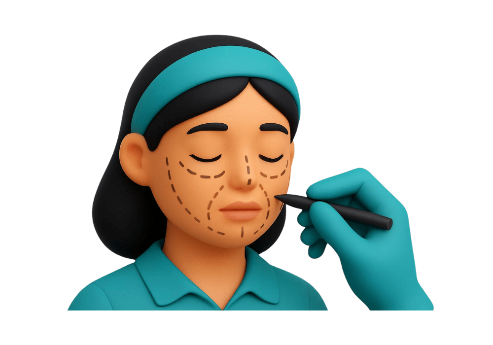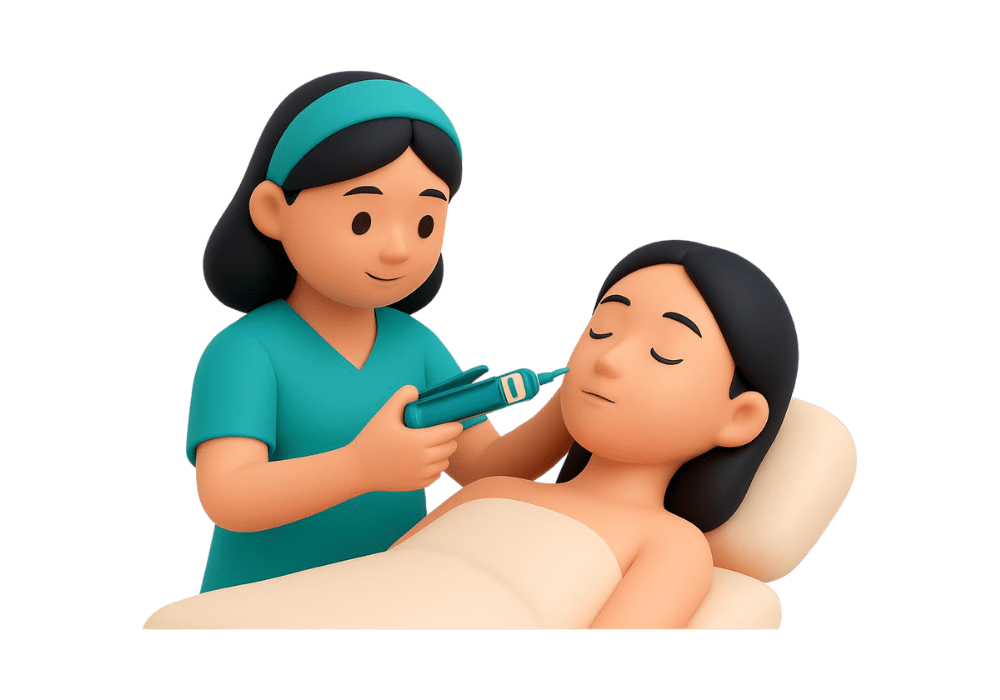 The doctor will identify and mark target zones for even application and ensure spacing between application points is consistent, avoiding sensitive or hihg-risk areas.